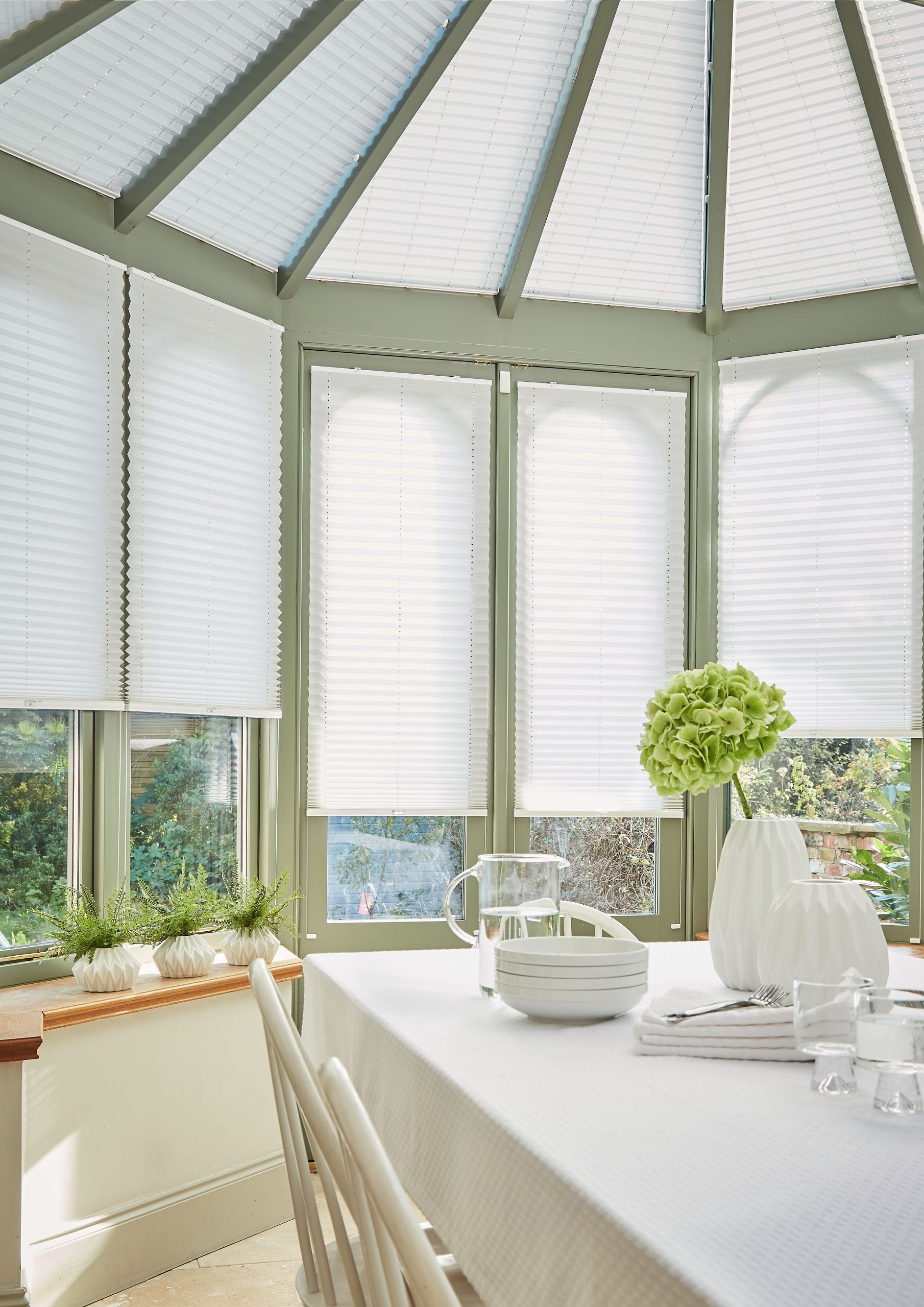 Pleated roof and lantern blinds are purpose-made for overhead glazing, offering effective control of sunlight and temperature. Their low-profile, pleated design fits neatly within roof windows, skylights and lanterns, helping to reduce glare while keeping interiors light and comfortable.